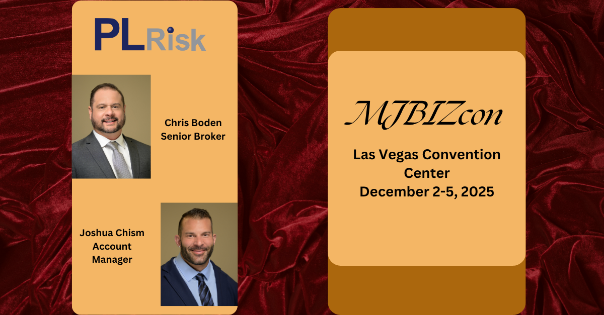 PLRisk’s Property and Casualty Division announces that they will be attending the 2025 MJBizcon from December 2nd to the 5th at the Las Vegas Convention Center. This convention brings together Operators, Investors & Business Professionals together to speak about the latest developments in the cannabis industry across the country. Attending on behalf of PLRisk will be Senior Broker of the P&C division, Chris Boden and Account Manager, Joshua Chism, CPCU.